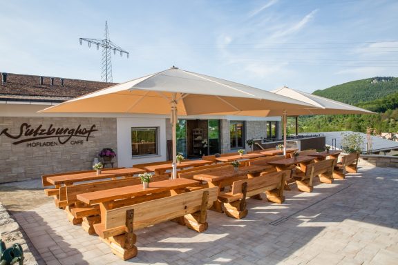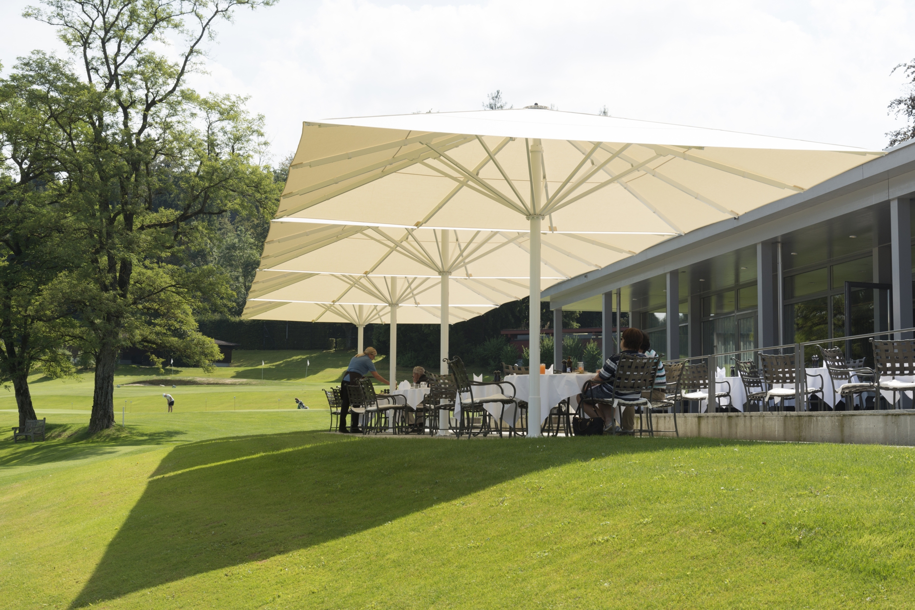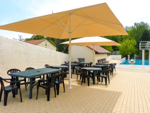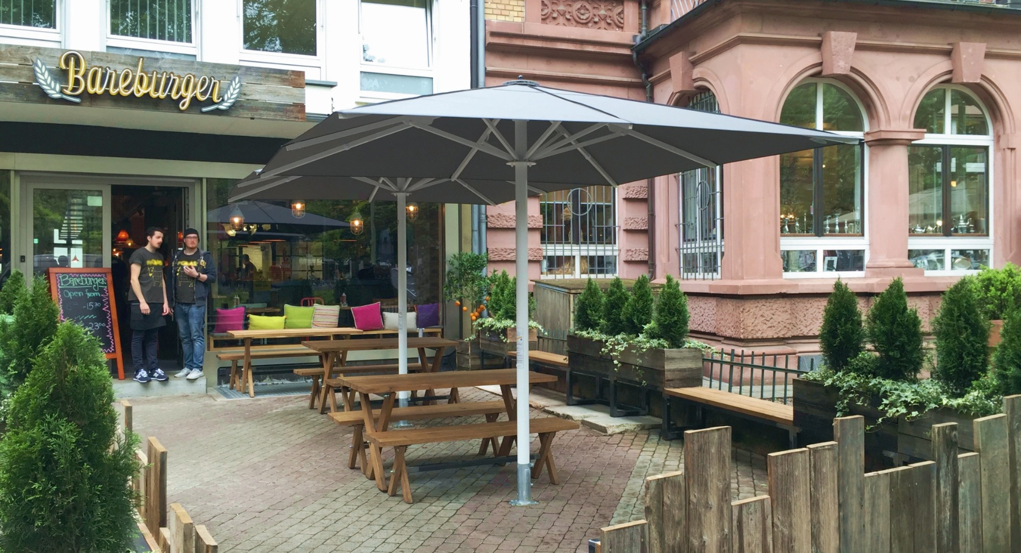Durch den geringen Abstand zwischen den Schirmen ist es ihnen möglich ihre Terrasse lückenlos zu bestuhlen.