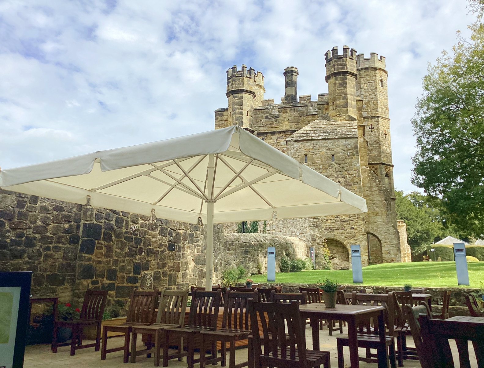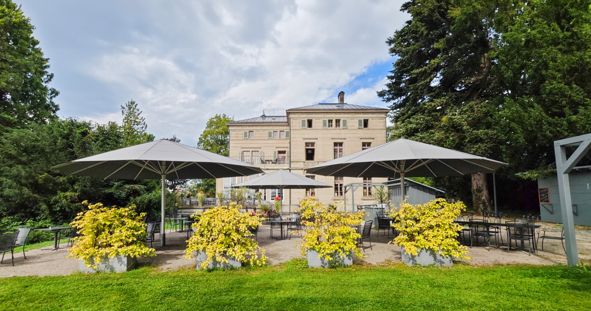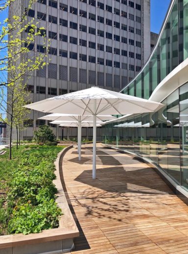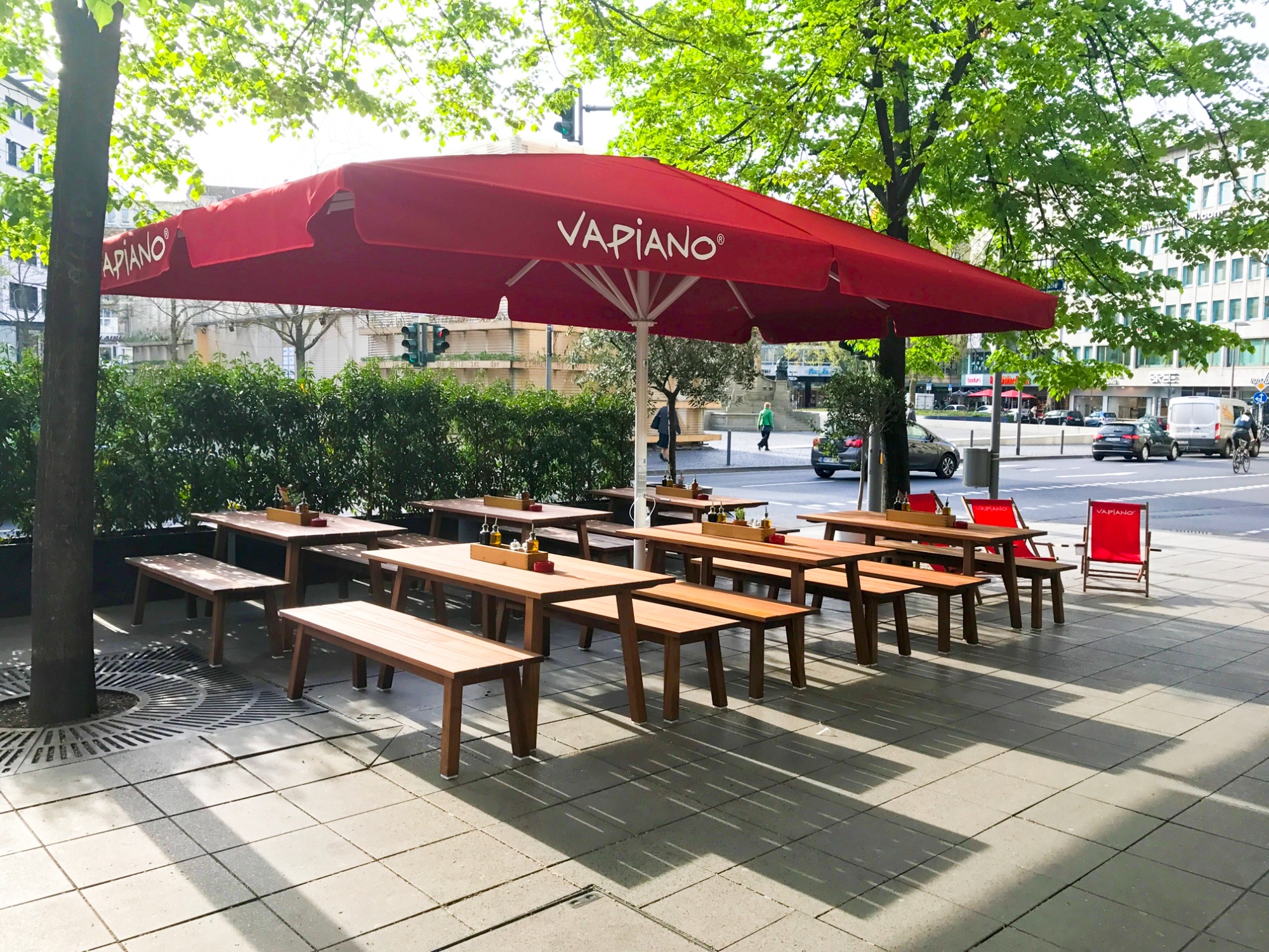 Durch den geringen Abstand zwischen den Schirmen ist es ihnen möglich ihre Terrasse lückenlos zu bestuhlen.