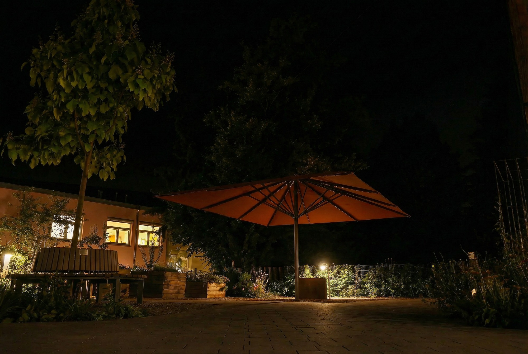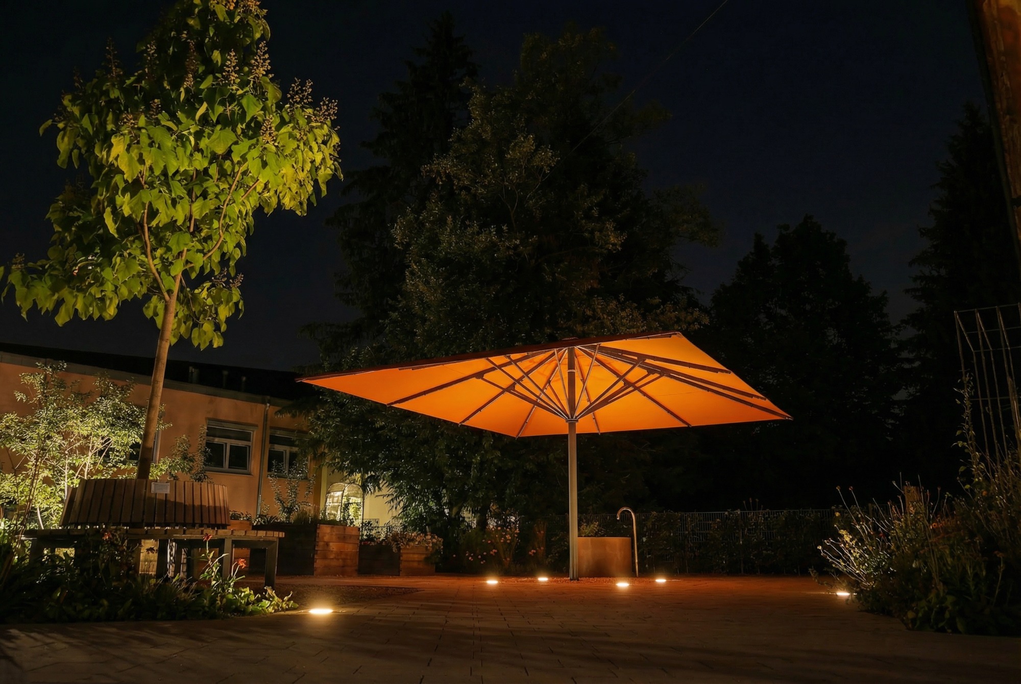 Die Sonnenschirme sind die kostengünstigste und einfachste Lösung, um Ihre Außensaison erheblich zu verlängern. Infrarotheizungen im Schirm sorgen dafür, dass Ihre Gäste auch bei kühleren Temperaturen bequem im Freien sitzen können – kein Gast muss vor der Kälte fliehen. Mit integrierter Beleuchtung schaffen Sie zudem eine einladende Atmosphäre bis in die Abendstunden, auch im Herbst.