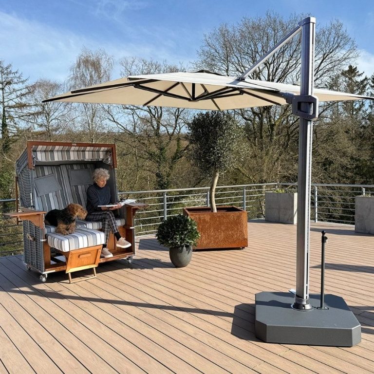 - Platzieren Sie Sonnenschirme und Segel flexibel, je nach Sonnenstand.